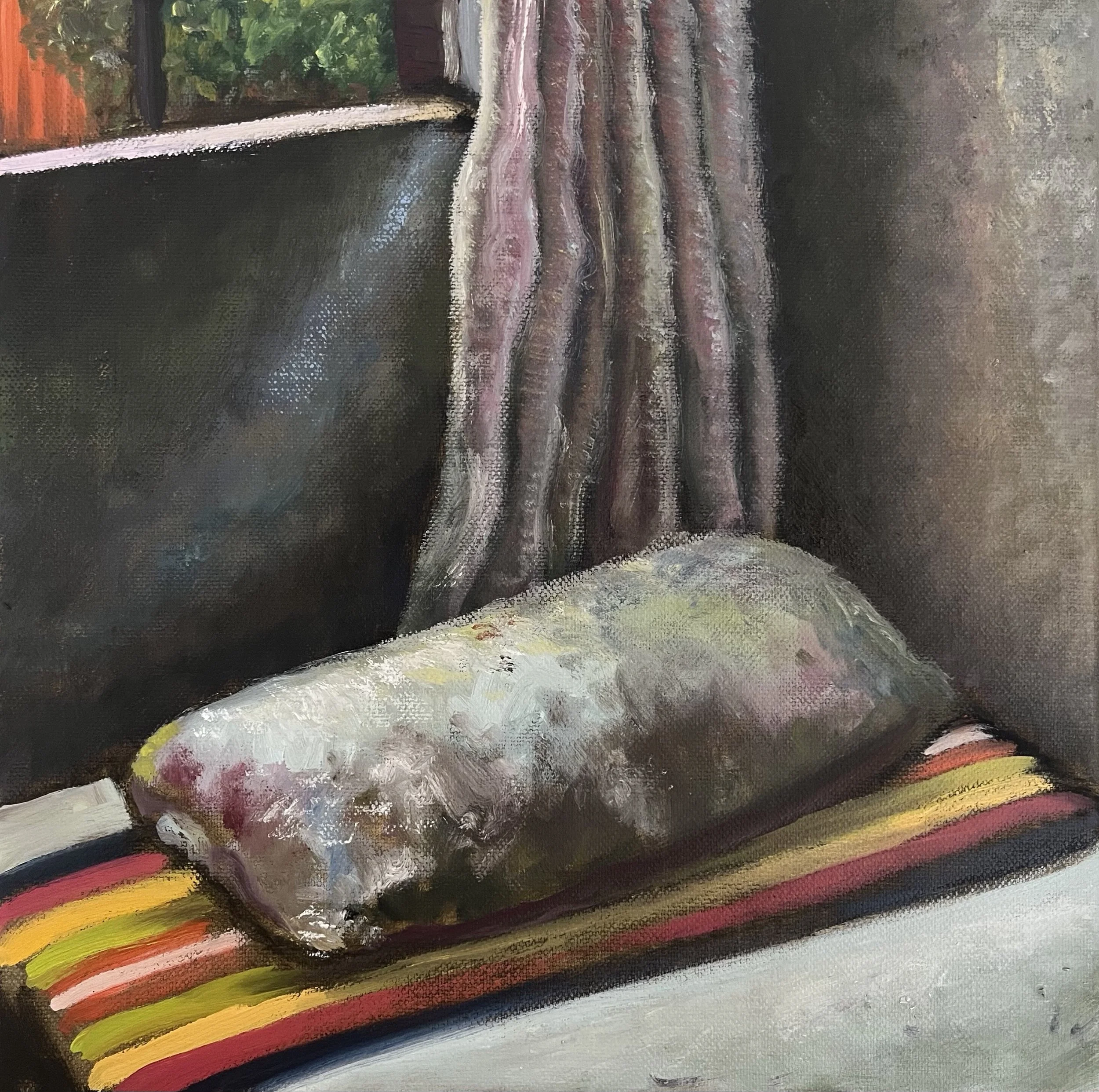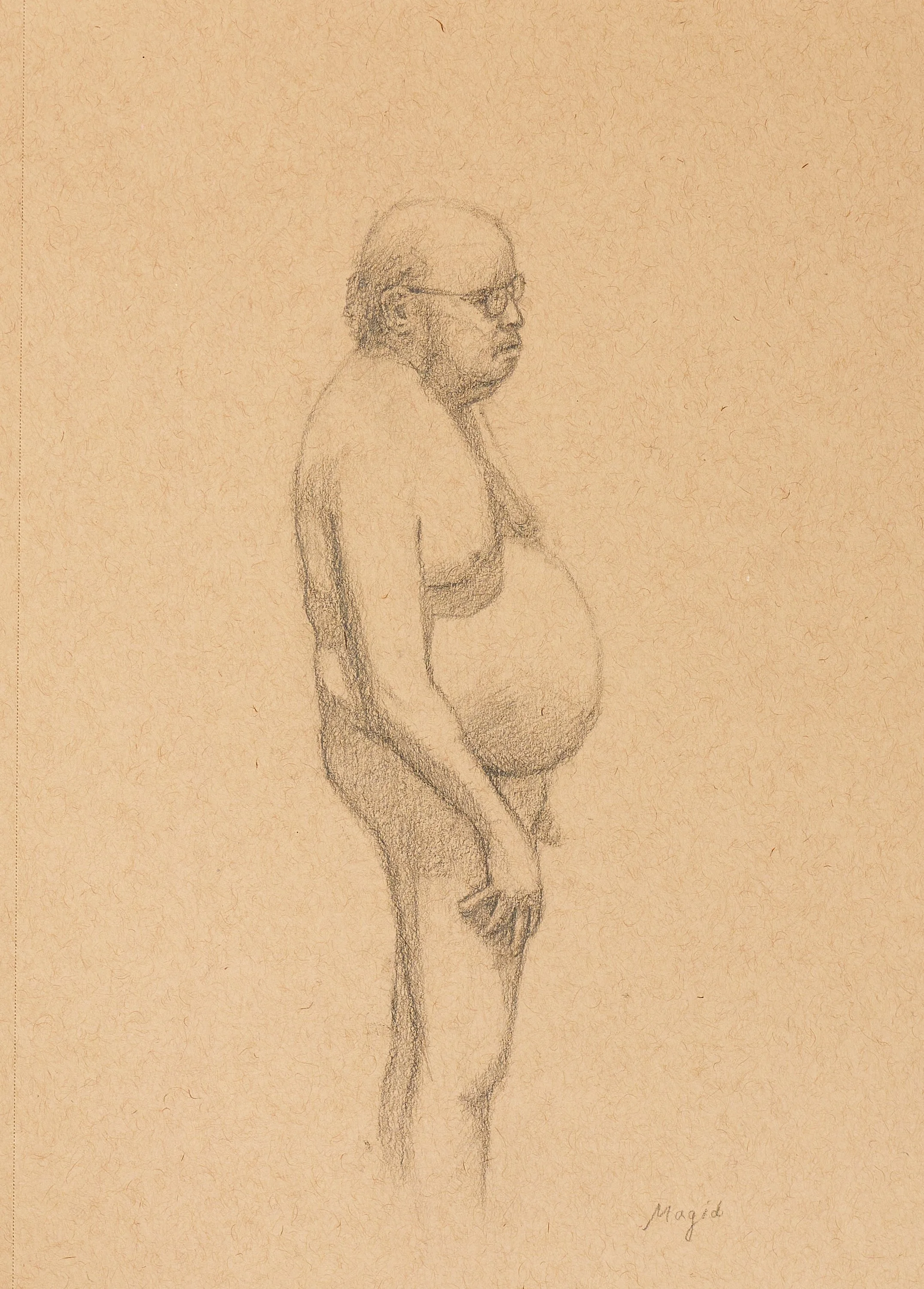 Starting in 2024, Jordan focused his attention on developing his own visual language as an oil painter and draftsman. Drawing from masters such as El Greco, Velazquez and Goya as well as from modern luminaries such as Max Beckmann, Edward Hopper, and Francis Bacon, Magid is interested in capturing the heavy weight of beauty inherent in the everyday moments of living. Jordan’s work is painted from life, rooted in the human body with importance given to context, especially the mundane objects that surround it. Magid’s paintings are intent on going beyond narrative and representation to highlight the emotional experience of perception.